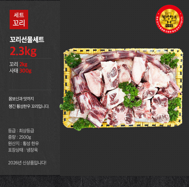 • [명절 특가] 횡성한우 꼬리선물세트 2.3kg, 꼬리+사태 상품번호 : 100113