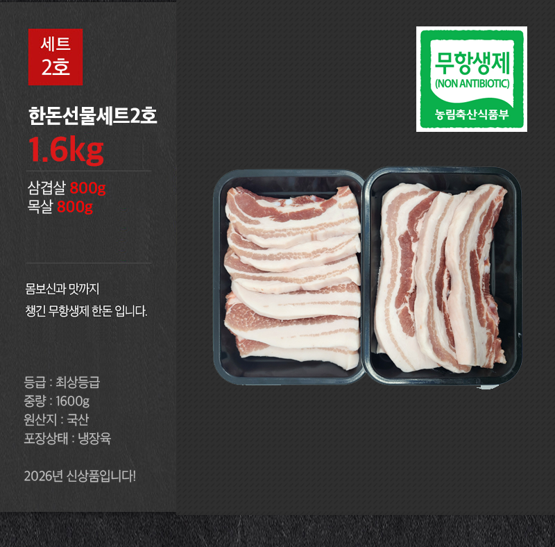 품목 또는 명칭 한돈 선물세트 2호 1.6kg, 삼겹살 & 목살