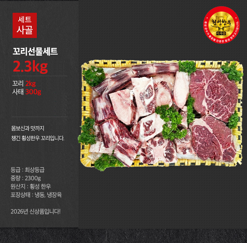 [명절 특가] 횡성한우 꼬리선물세트 2.3kg, 꼬리+사태