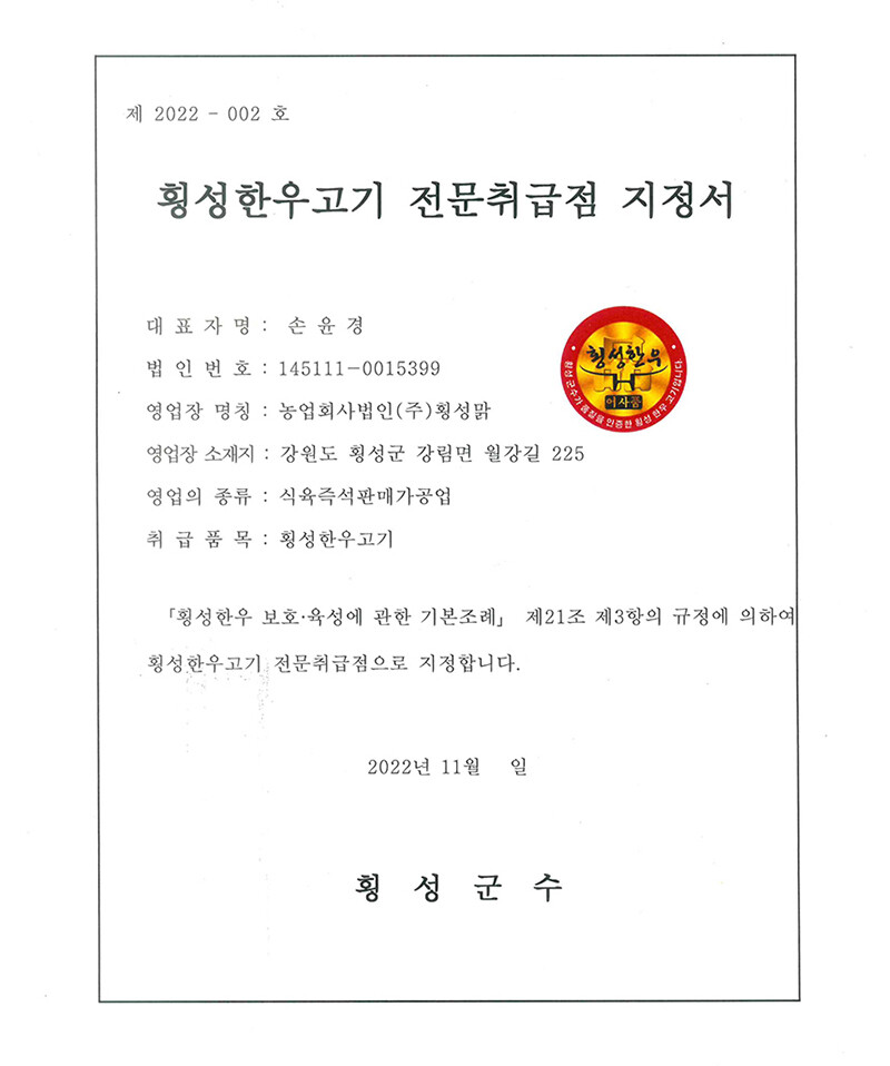 BANK ACCOUNT : 농협 351-0940-3188-63 (예금주 : 농업회사법인(주)횡성맑) 상호명 : 농업회사법인(주)횡성맑 / 대표자 : 손윤경(lesbos4444@hanmail.net) / 개인정보관리자 : 손윤경 CONTACT : lesbos4444@hanmail.net FOR MORE INFORMATION. ![]() |