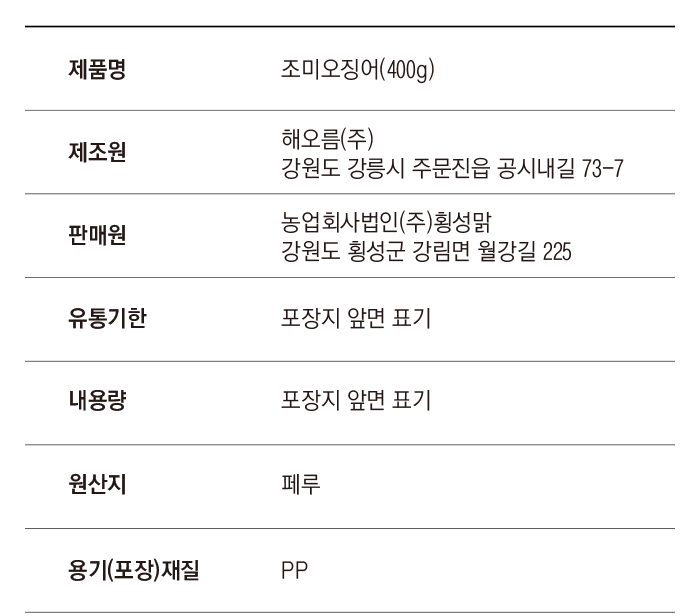 • 최상급 페루산오징어를 국내에서 가공한 제품입니다.