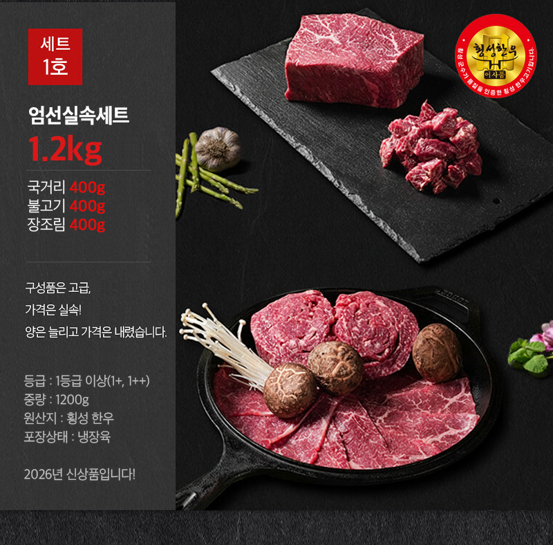 상품구성 국거리(400g),불고기(400g),장조림(400g)