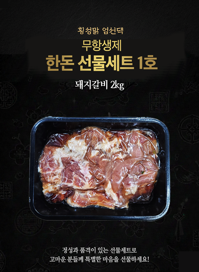 • [명절 특가] 한돈 선물세트 1호 2kg, 무항생제 돼지갈비 상품번호 : 100123