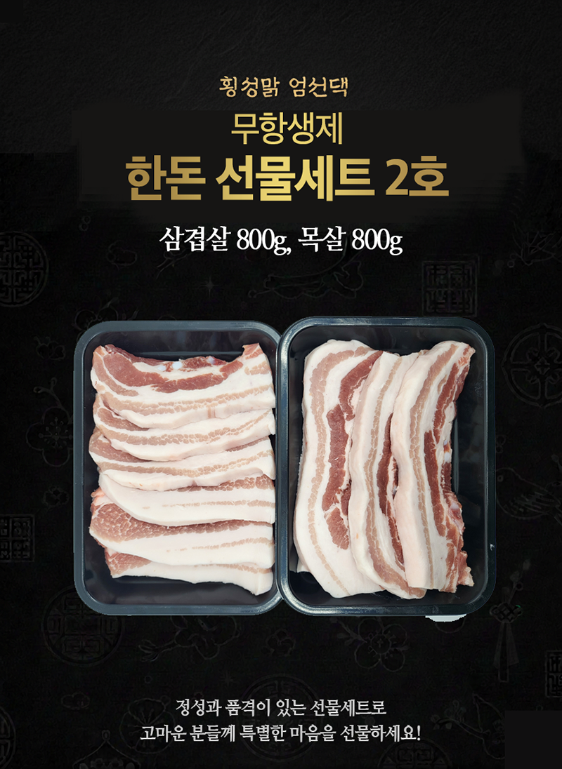• [명절 특가] 한돈 선물세트 2호 1.6kg, 삼겹살 & 목살 상품번호 : 100124