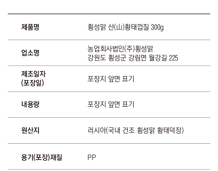 사업자등록번호 : 508-87-00373 / 통신판매업 신고번호 : 제2018-강원횡성-45호 [사업자정보확인]